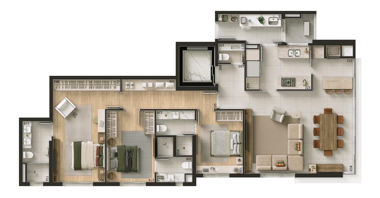 As imagens aqui constantes são ilustrativas. As perspectivas dos ambientes apresentam sugestões de decoração, não fazendo parte do projeto em execução ou que será executado. Os acabamentos serão conforme memorial descritivo. Registro de Incorporação no Cartório de Registro de Imóveis competente. Para mais informações entrar em contato com a construtora.